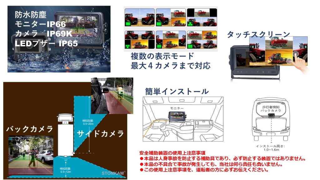 当社の重機・建機・トラック用安全補助検知器は、最新のテクノロジーと高度なAI処理技術を組み合わせて、運転者や作業員の安全性を最優先に考えた製品です。作業現場での事故を最小限に抑え、効率的な作業をサポートするために設計されました。